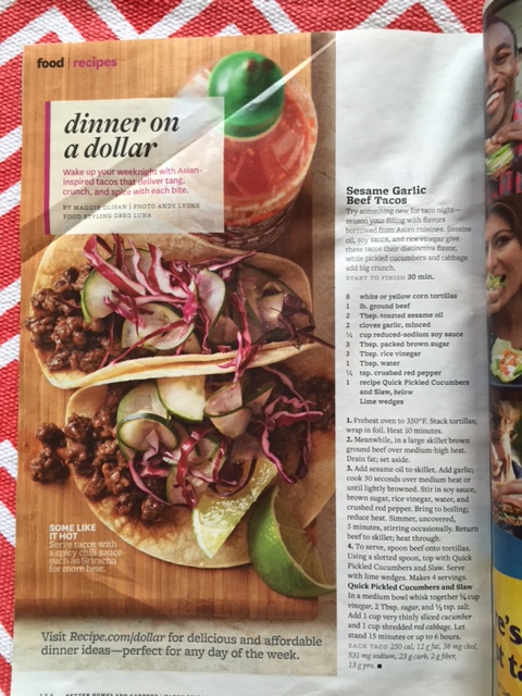 Sesame Garlic Beef Tacos (from Better Homes and Garden, March 2015 edition)