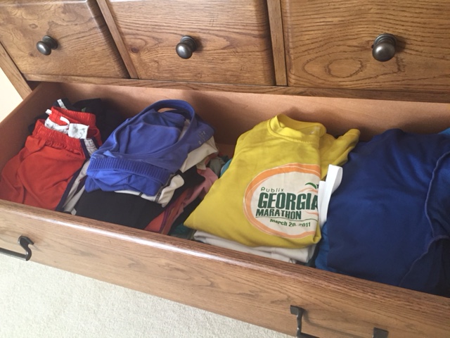 It is always nice being done with spring cleaning–and bonus: it feels like I got a new wardrobe and found items that I totally forgot that I had! My favorite find was a tank top from my high school field hockey team. Other finds include a ton of race/sorority shirts, Redskins and Clemson jerseys, two pairs of rainbows and my favorite pair of wedges. Who knew that all these treasures were stowed away?!?