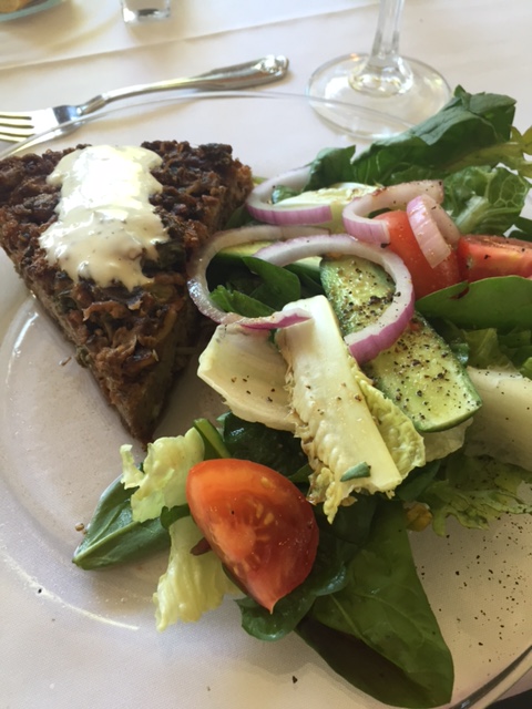 Yummy quiche, despite the brown color and spring salad