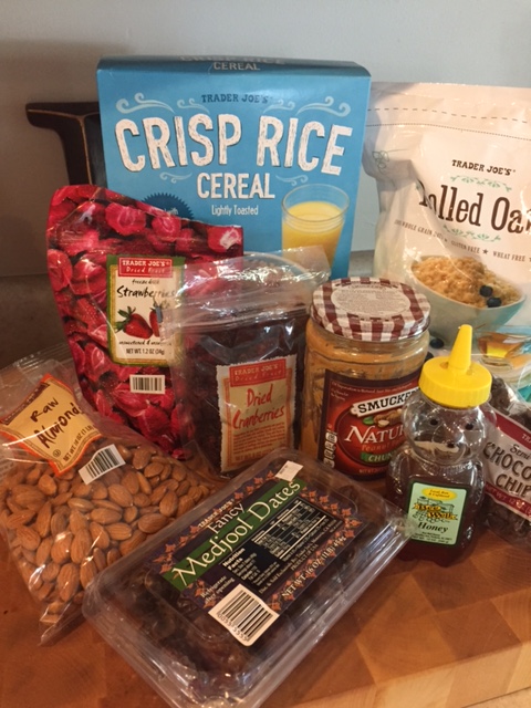 As I have mentioned before, Drew is in school and needs to have a little snack to get him through his late night classes.  After taste testing numerous bars (earlier post), he loves Cliff bars and Lara bars.  They are the classics for our family in the realm of bars.  Doing research online I noticed that many people make their own bars in order to save a little cash and to actually know what is going in the bars.  I decided why the heck not and went to Trader Joe’s to pick up some supplies!