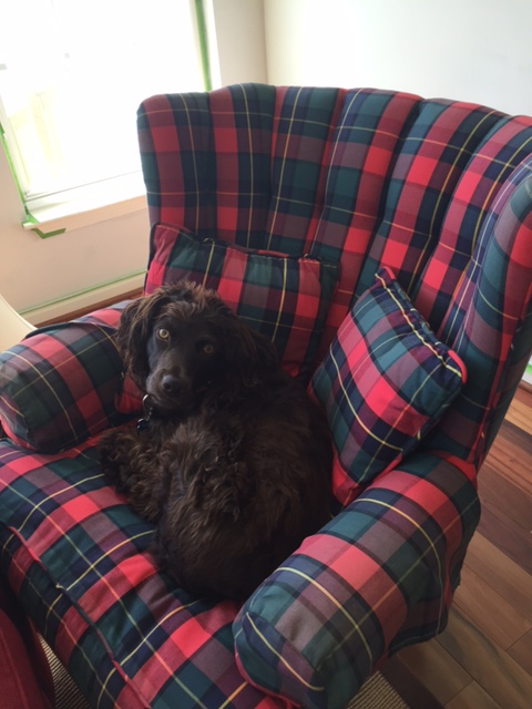 What color should I recover the plaid chair/red couch?  I am thinking a cream color or navy.