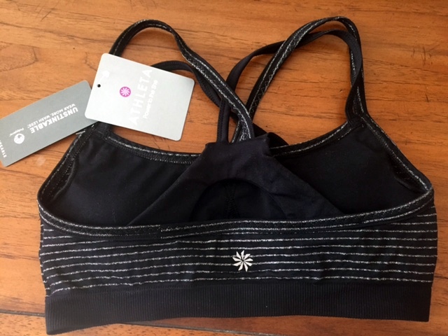 Last week, I talked about the sale that Athleta was having and I took advantage of the extra 20 percent off and bought a new sports bra and pair of shorts.  The shorts do not have built-in undies, which is a first for running shorts for me.  I was surprised how much I liked them and sad that I didn’t purchase more.  The sports bra is from their line of “no stink” bras and has a cute back design #lovemypurchases.