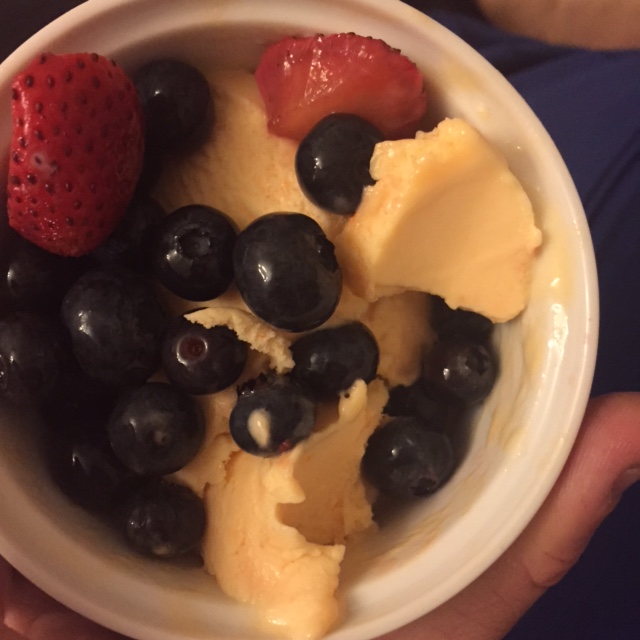 I finished my evening with a bowl (or 2) of orange sorbet and a couple gram crackers with peanut butter. It is the perfect ending to a weeknight in my book!