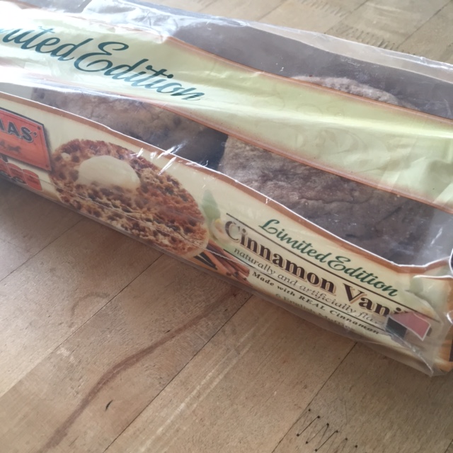 My go to breakfast these days is not the healthiest–but it sure is delicious. I was at the grocery store a week ago and a smell was waffling through the air. While I was perusing the fruit aisle, all I could smell was hints of cinnamon and vanilla. I am telling you this stuff was strong. I got my dog instinct nose on and followed the smell to…(pause for drum roll please)… Thomas Cinnamon and Vanilla English Muffins. As I had such a smell reaction to them, I obviously had to purchase them! I have been toasting an English muffin and topping it with natural peanut butter for the past couple mornings. It may not be the most protein packed breakfast in the world, but it sure gets my senses going 🙂