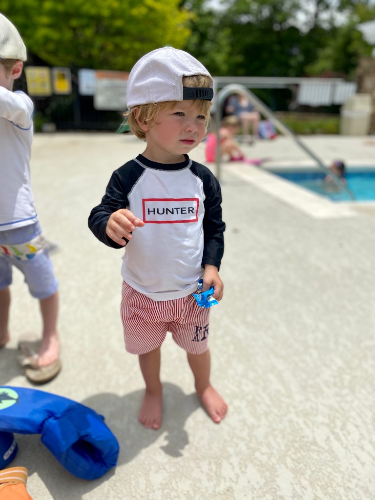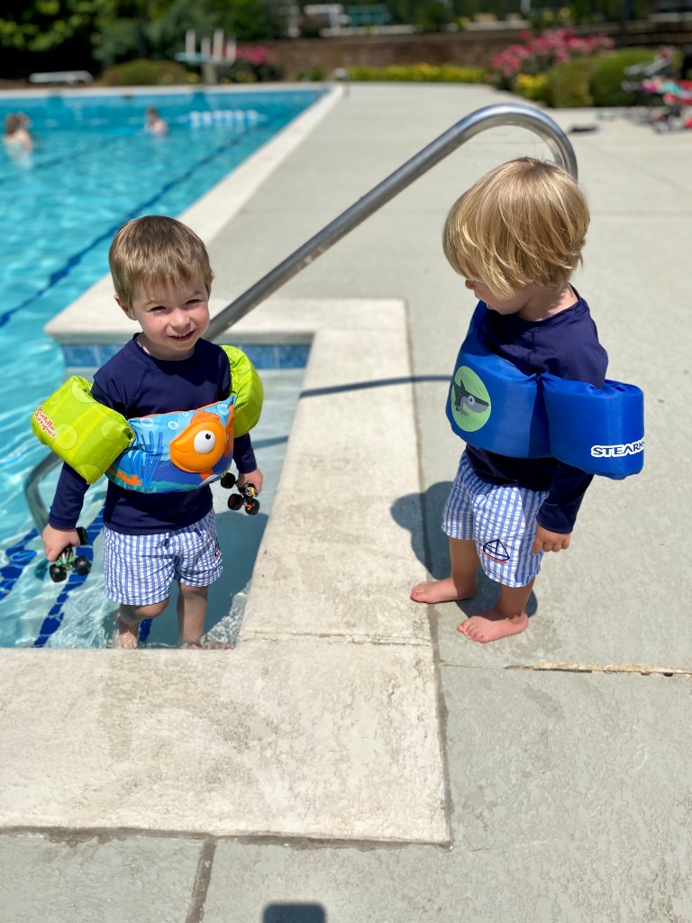This long weekend was filled with pool time for our little family. Luckily, our neighborhood pool opened on Friday which allowed for us to enjoy the pool four days in a row. I am pretty sure this summer our boys are going to become quite the little fish.