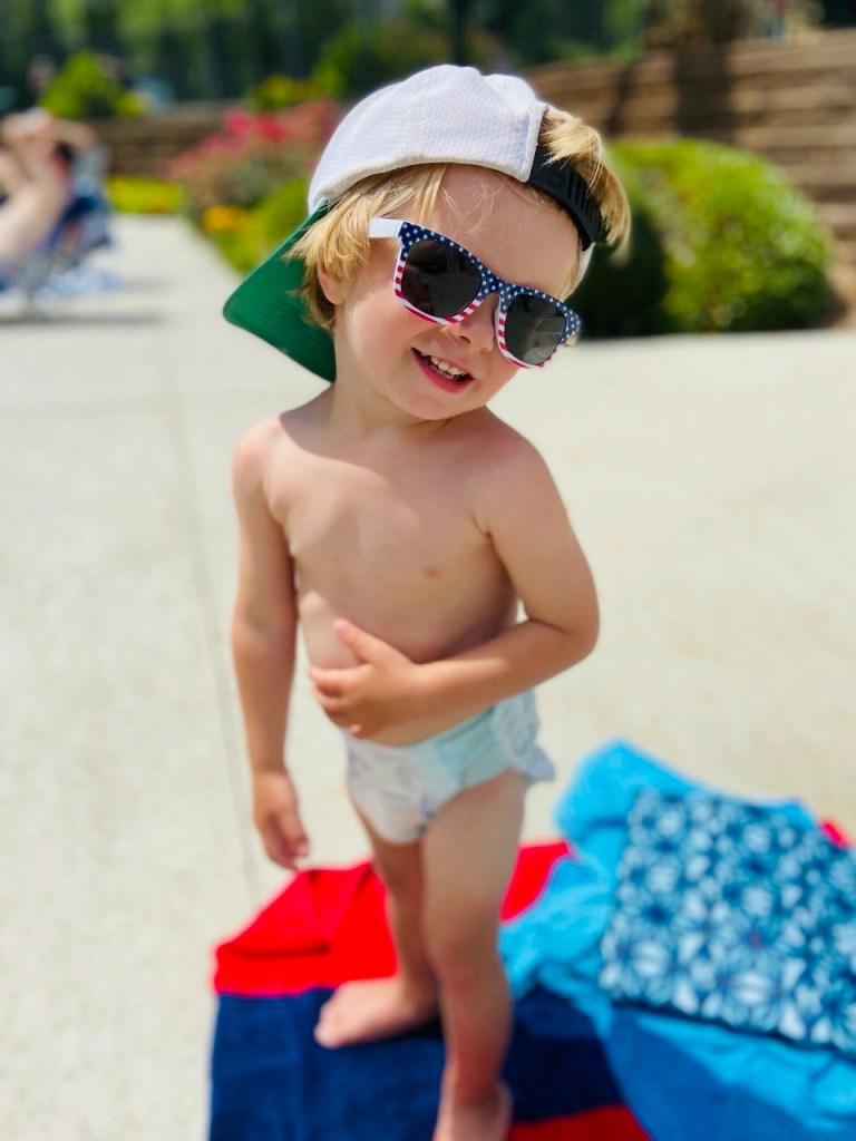 Following naps, we went back up to the pool for a little more sunshine and water time. Reid is getting more confident and Walker is following suit, I have a feeling swim lessons are going to be necessary for number 2! After the pool, we ordered delivery sushi and ate a (somewhat) peaceful dinner while the kids played. After the kids went down to bed, we stayed up wayyy too late laughing and talking on our back porch. Summer time is my favorite time as Drew and I use our back porch a ton and spend most weekend evenings staying up late, listening to music and talking.