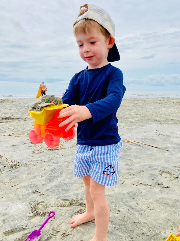 On Saturday afternoon, we visited our friends, Christina and Ryan and their adorable 1 year old daughter. It rained the majority of the day, but around 5 it cleared up and allowed us to venture around Sullivan’s Island on their golf cart (which Reid was obsessed with “driving”) and have a little bit of running around on the beach before dinner.