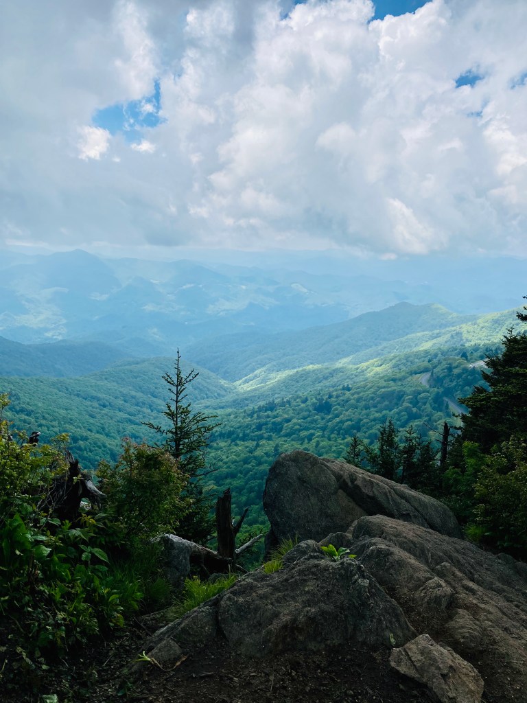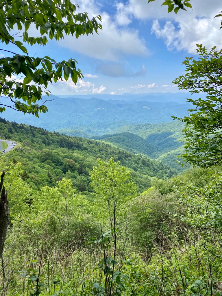 Saturday morning, we woke up and went for a hike off the Blue Ridge Parkway. What started as a hike up the trail, turned into a trail run down the mountain! I am happy to report that after running more than 2 miles in the woods and over damp rocks, no one fell 🙂 In total, we hiked around 5.5 miles.