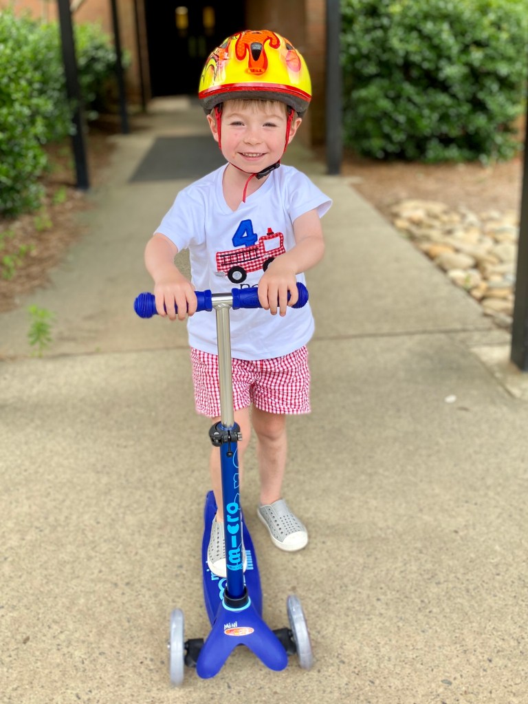 Micro Mini Deluxe Scooter. My mom purchased this scooter for Reid’s made up holiday of Kid’s Day (smart little dude!). These scooters are a little hard to find, but they have some in stock on Amazon (check out Amazon Warehouse Deals for a less expensive returned one!). Lets be honest, social distancing is still in full swing so spending time outdoors with little ones to get their energy out is necessary. Reid loves riding his bike and I wanted something that Walker could use to keep up with his big brother. After a lot of research, I stumbled on the Micro Mini scooter. These scooters are awesome, they have two wheels in front and one in the back. The scooter is more like riding a skateboard than a traditional scooter, and both of my boys got a hang of it quickly. This is quickly becoming my favorite new toy 🙂 Please note: I would suggest paying the 10 dollars extra for the deluxe version over the classic version; weight capacity is higher, the T bar comes off easy for transporting and is adjustable to fit both my 2 and 4 year old. I cannot say enough about this well built scooter.