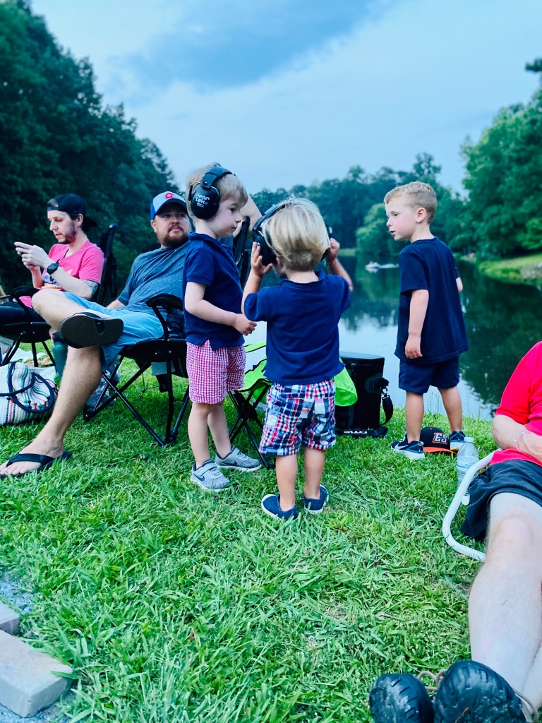 We tested out fireworks on Friday evening with the boys to see how they would do–honestly, Walker wanted inside the house the whole time, but we decided to give it a go and figured worst case we would just leave. Well my friends, it took a little while but both of my boys did great!! We put earphones on them (what we use at monster jam) and it made them less scared and protected their ears. It was so magical seeing fireworks with my boys for the first time!