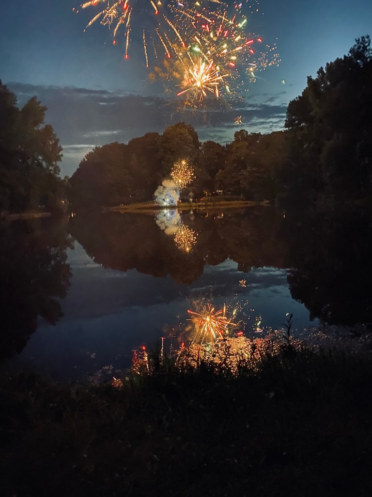 We ended up having a small cookout with some of our neighbors (literally spur of the moment, everyone brought over what they were planning on eating and we had a little get together!). It was so fun having the kids play in the backyard and being able to share a drink with friends. Following dinner, we all headed to our neighborhood’s dam to watch the firework show!
